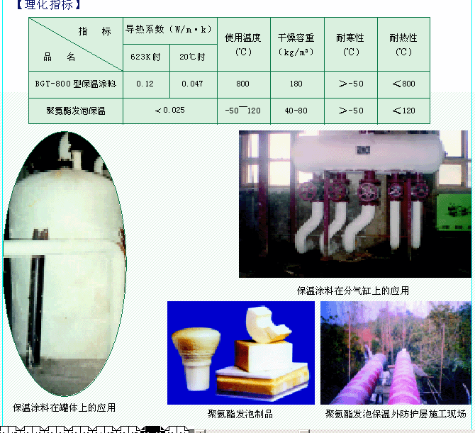 BGT-800型復(fù)合硅酸鎂保溫涂料是一種新型無(wú)機(jī)微孔網(wǎng)狀輕質(zhì)高效保溫材料,產(chǎn)品屬于不定型膏狀,施工方便、絕熱性能好、不開(kāi)裂、不粉化、不脫落。可廣泛應(yīng)用于化工、電力、冶金、石油等行業(yè)的高溫管道,尤其適用于異型熱力管網(wǎng)及閘、閥、球體的保溫隔熱。經(jīng)檢測(cè),其各項(xiàng)性能指標(biāo)均優(yōu)于其它傳統(tǒng)保溫材料。